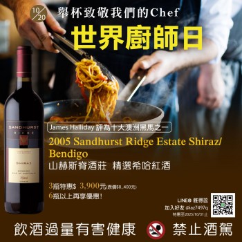 【世界廚師日】舉杯致敬我們的Chef! 2005 Sandhurst Ridge Estate Shiraz