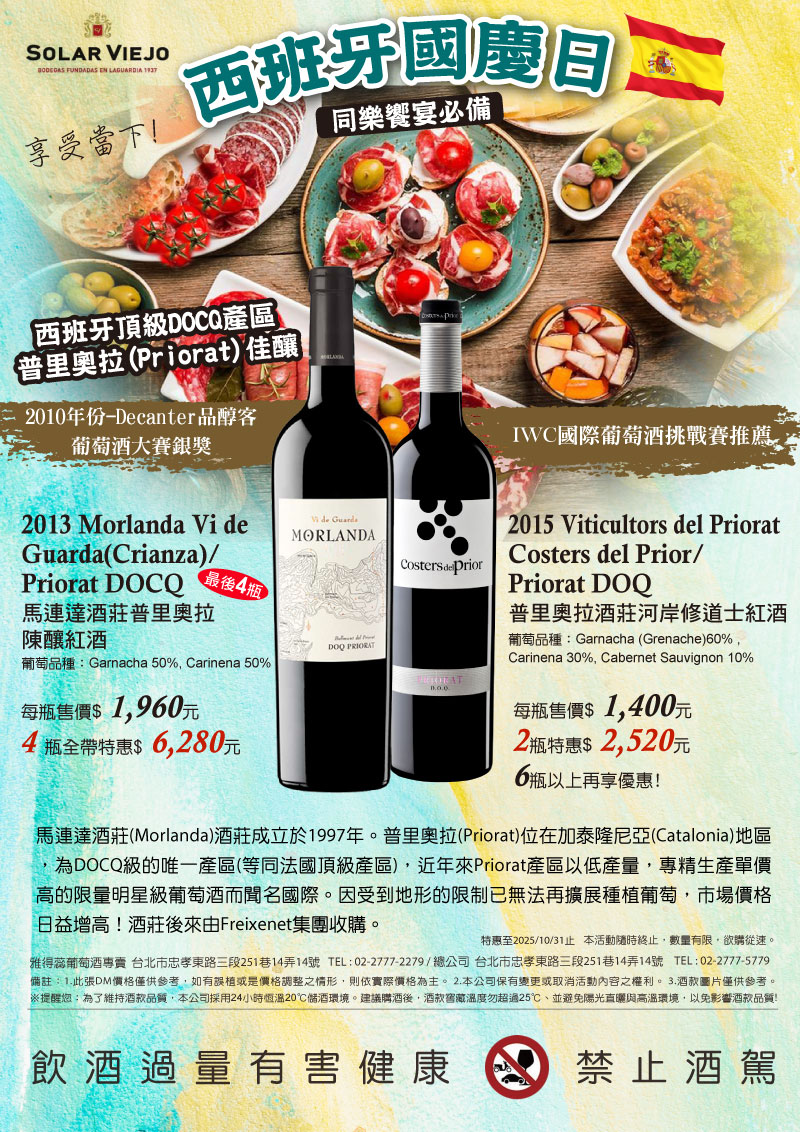 【西班牙國慶日】同樂饗宴必備美酒推薦!