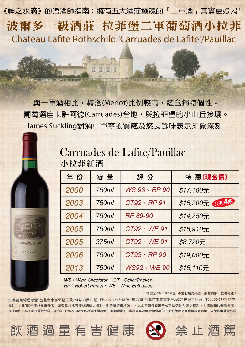 【拉菲堡二軍葡萄酒小拉菲