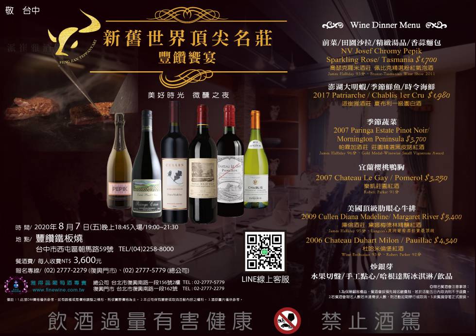 8/7(五)【台中】新舊世界頂尖名莊豐饡饗宴