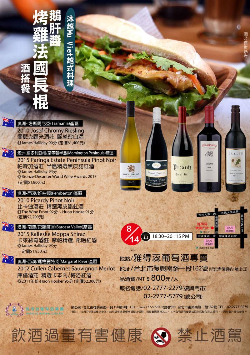 8/14(五)【沐越】鵝肝醬烤雞法國長棍酒搭餐 (已額滿!)