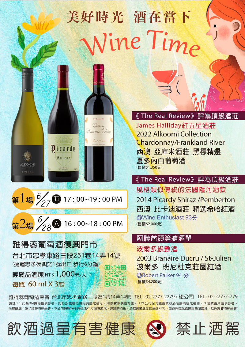 6/27、28《Wine Time》美好時光 酒在當下 輕鬆品酒趣!