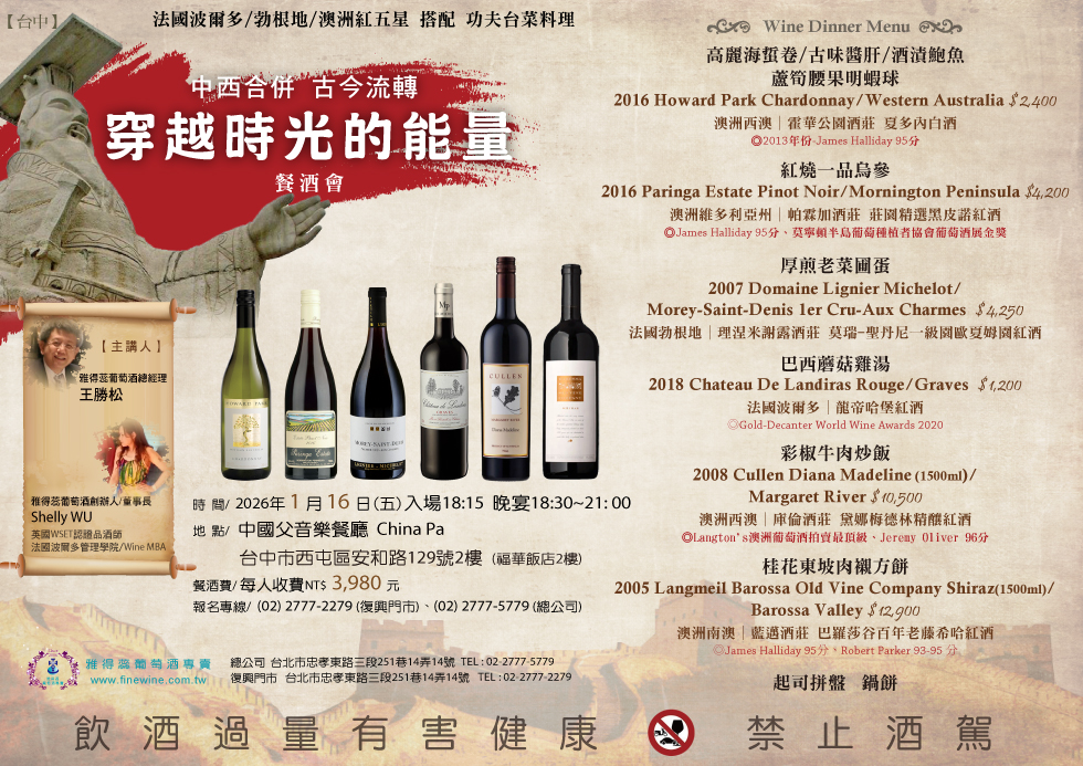 1/16(五)【台中】穿越時光的能量餐酒會