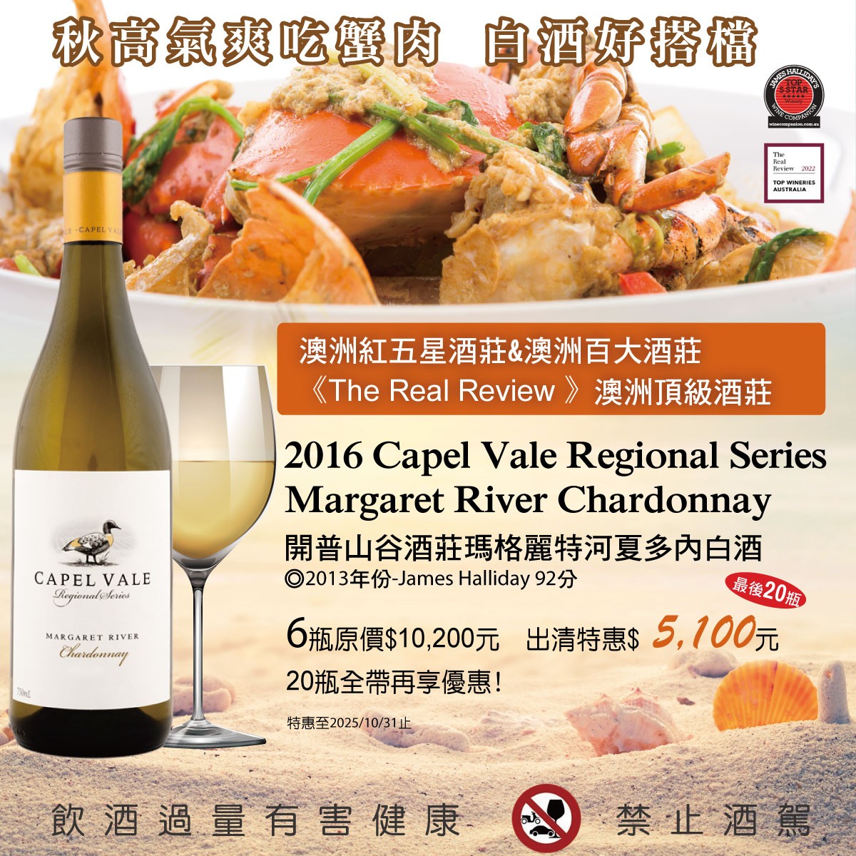* 【秋高氣爽吃蟹肉】白酒好搭檔 2016 Capel Vale Regional Series Margaret River Chardonnay