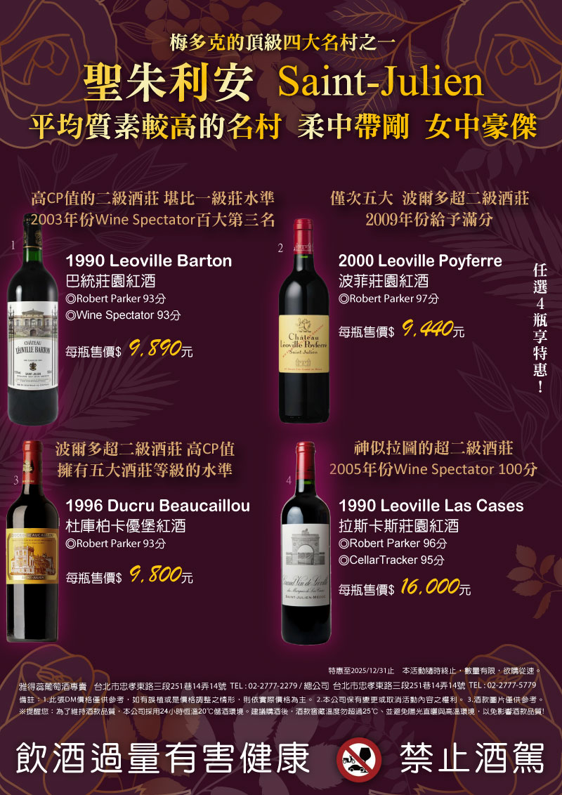 【梅多克的頂級四大名村之一】聖朱利安 Saint-Julien