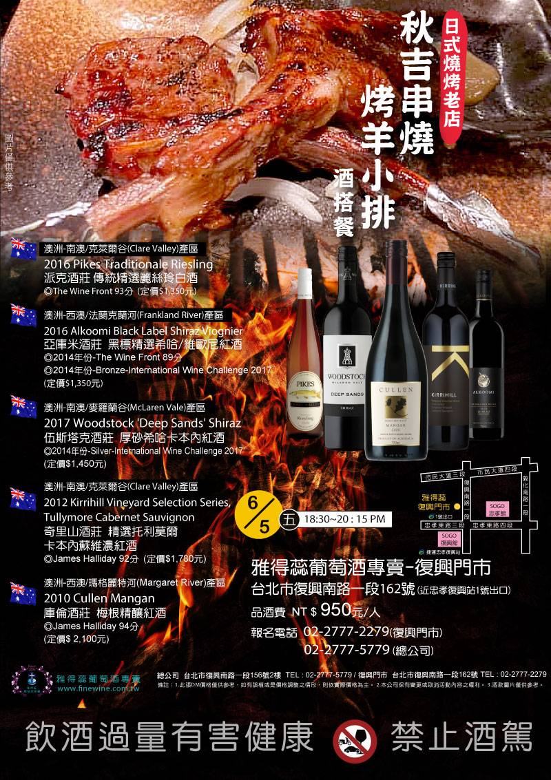 | 6/5(五)秋吉串燒烤羊小排酒搭餐 (已額滿) | |||