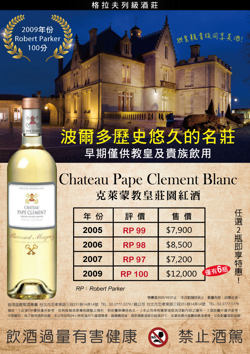 波爾多歷史悠久的名莊 Chateau Pape Clement Blanc