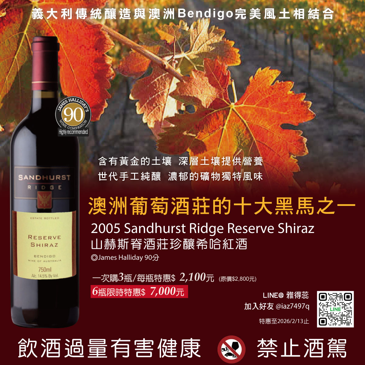 【澳洲葡萄酒莊的十大黑馬之一】含有黃金的土壤 濃郁的礦物獨特風味 2005 Sandhurst Ridge Reserve Shiraz