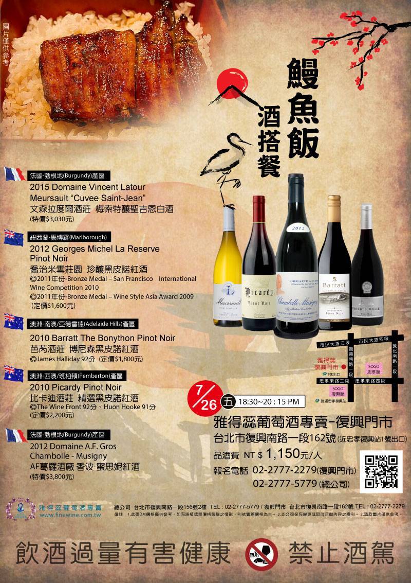 7/26 (五)鰻魚飯酒搭餐 (已額滿!)
