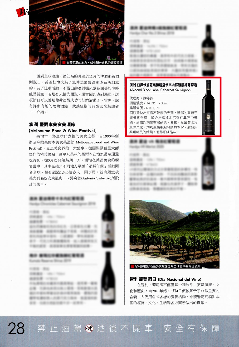 | 標題 | 【品酩誌雜誌 2022年元月號】全球飲酒日 酒款推薦-Alkoomi Black Label Cabernet Sauvignon |