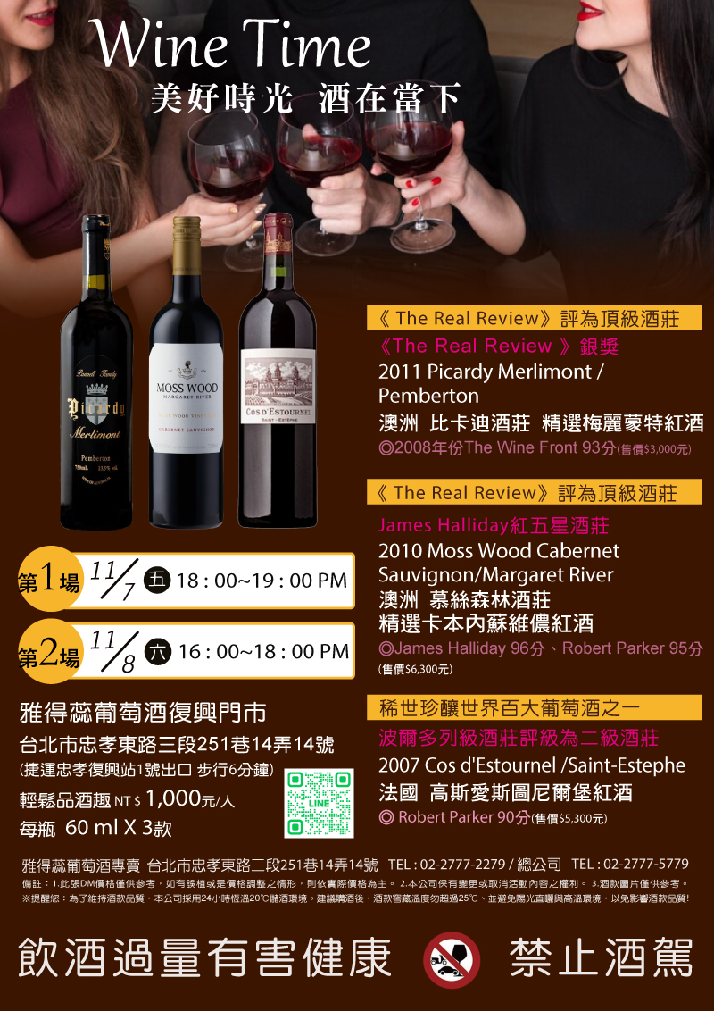 | 11/7《Wine Time》美好時光 酒在當下 輕鬆品酒趣! | |||